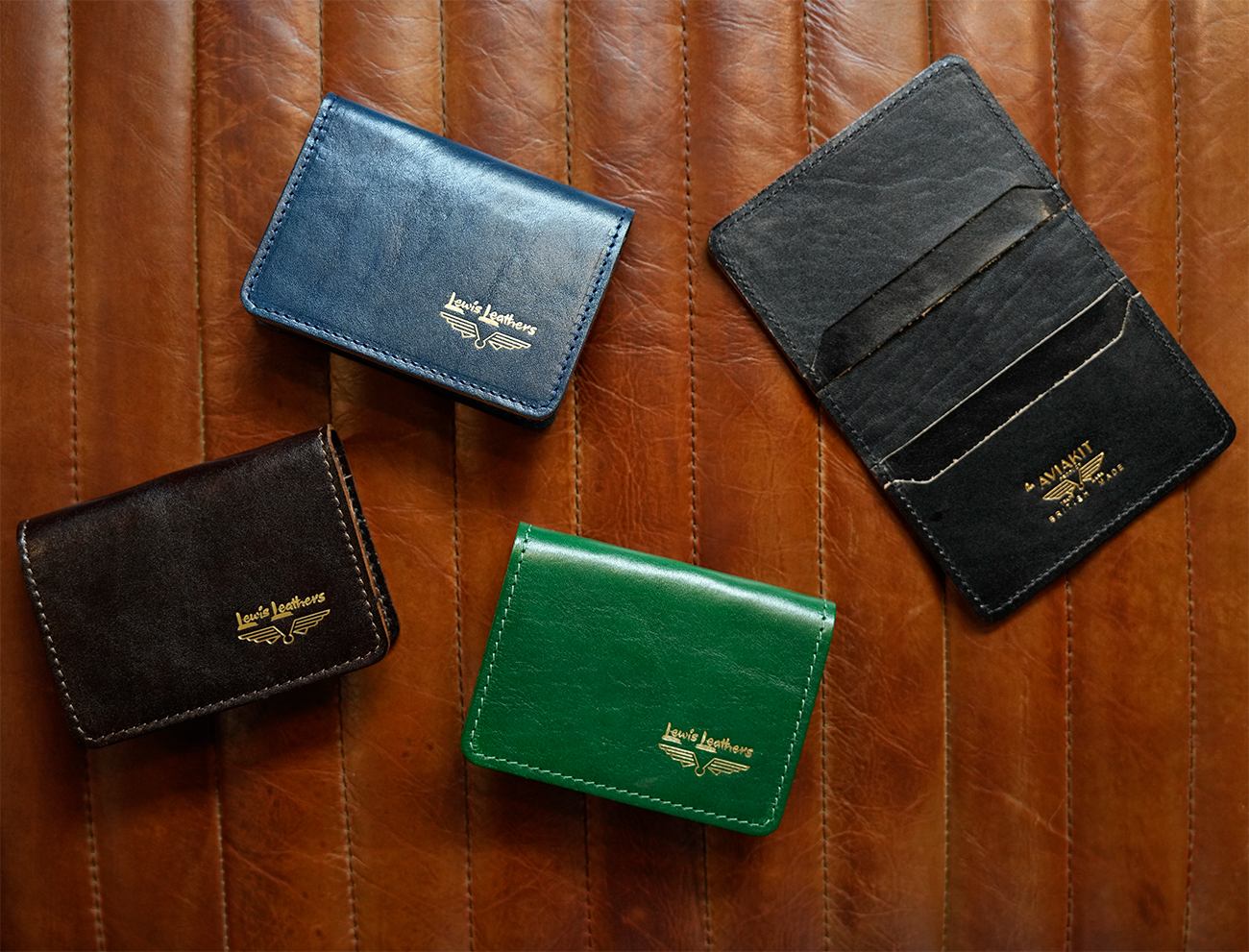 All Veg-Tan Cow Leather. - Clockwise; Navy, Black (opened), Green and Brown.