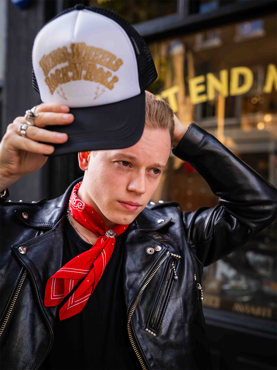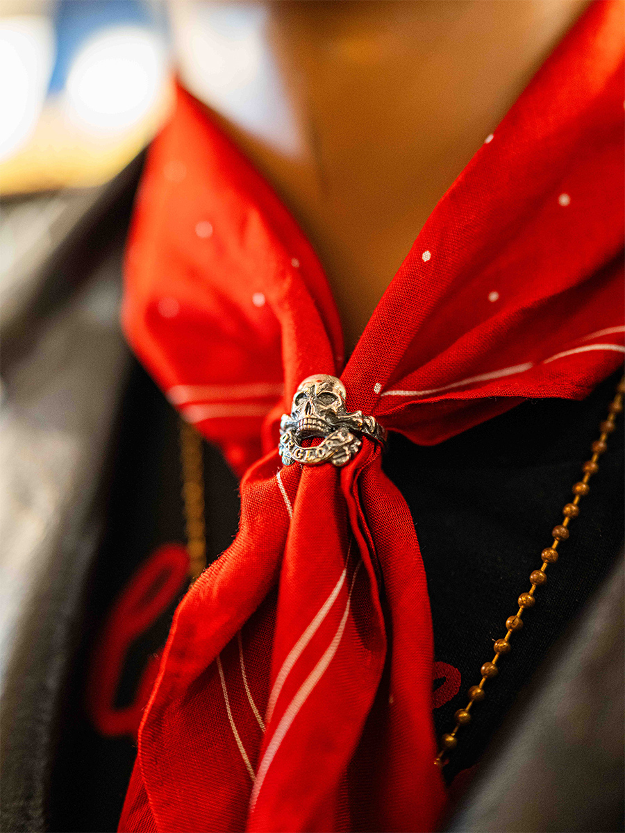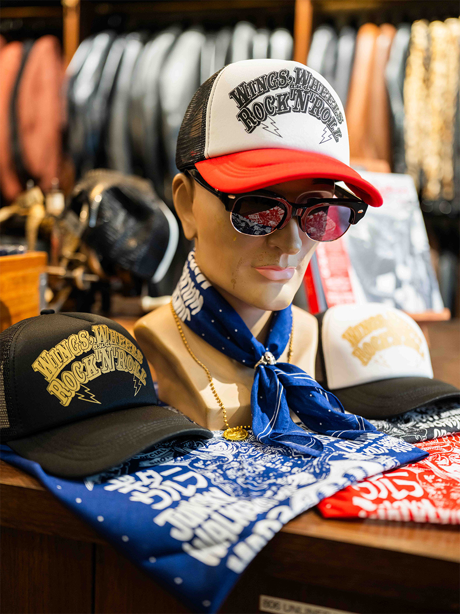 LIMITED EDITION Featuring artwork by Rockin’ Jelly Bean, this bandana was created for our 2025 Wings, Wheels & Rock ‘n’ Roll event in Tokyo Japan. There are only a limited number of this discharge-printed classic, which are available in three colours. EROSTIKA is the brainchild of Rockin’ Jelly Bean. A fixture in Tokyo’s Harajuku scene since 2004, the masked artist has produced this artwork exclusively for LL. - EROSTKA x LL products - Long sleeve T-shirt, Sticker, NEW! Foldaway bag, Cap and Short sleeve T-shirt |
