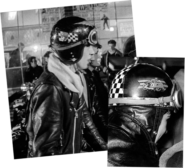 Starting in the early 1960s Lewis Leathers sold tuning parts and accessories for the Ton-up Boy who wanted his machine to standout and go faster than the rest. Apart from single seats, racing fairings and megaphone exhausts, highly stylised waterslide and (later) vinyl stickers were available in unique designs that were used to decorate tanks, helmets and even jackets (although we don't recommend this usage).